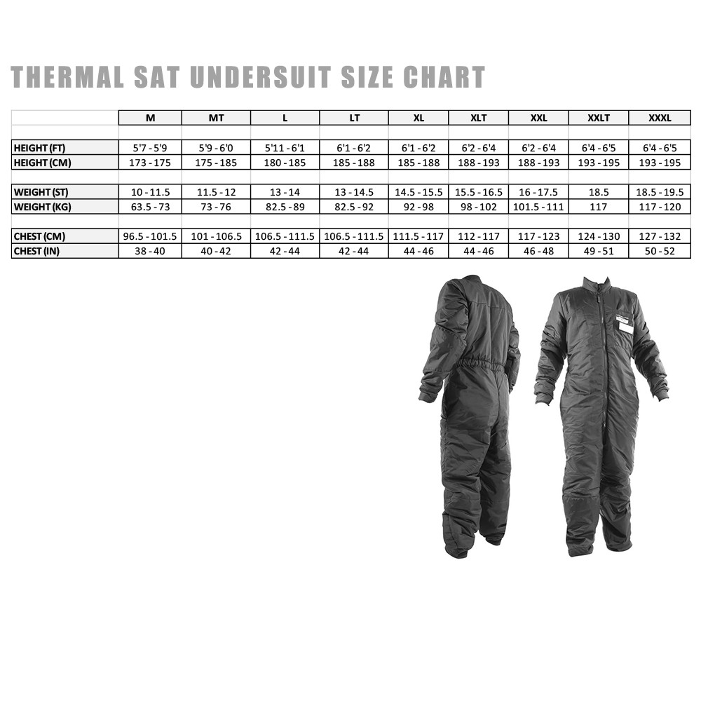 The integrated elasticated thumb holes on the cuffs will keep this thermal garments arms in place when donning any drysuit/Hotwater suit. Adjustable hook and loop fastening leg splits feature on the ankle area – useful for swift donning and the use of different types of work boot. Manufactured and secured with a high quality YKK® plastic zip, to withstand washing on the rig and reinforced stitching to increase its working life. Designed to last up to three times longer than the average undersuit! The Thermal Sat has minimal seams and no quilting to allow free movement around the suit and in action the undersuit avoids cold spots too. The suit also repels water fast so worn in the bell post dive; it is warmer and more comfortable than anything else. On the shoulder is a toughened nylon back panel to protect from rear entry zip damage.